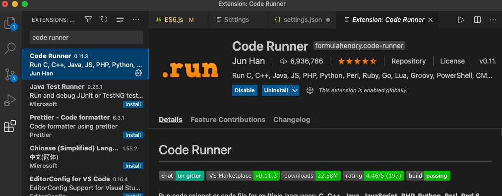 먼저 vscode에 js파일을 돌릴 수 있도록 개발환경을 구축해야한다.