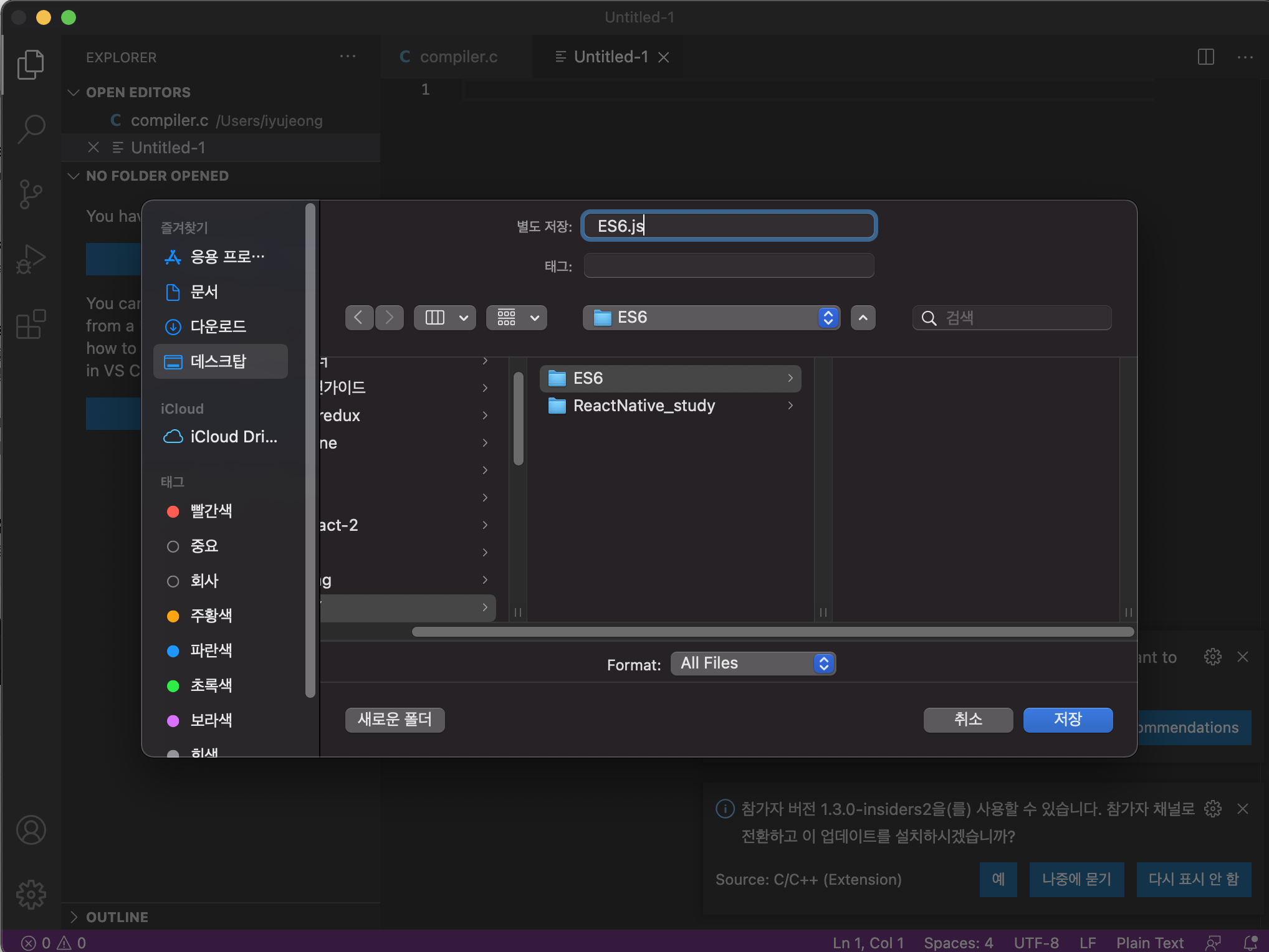 원하는 폴더에 파일을 생성해주고 이름을 ES6.js로 생성해준다.
