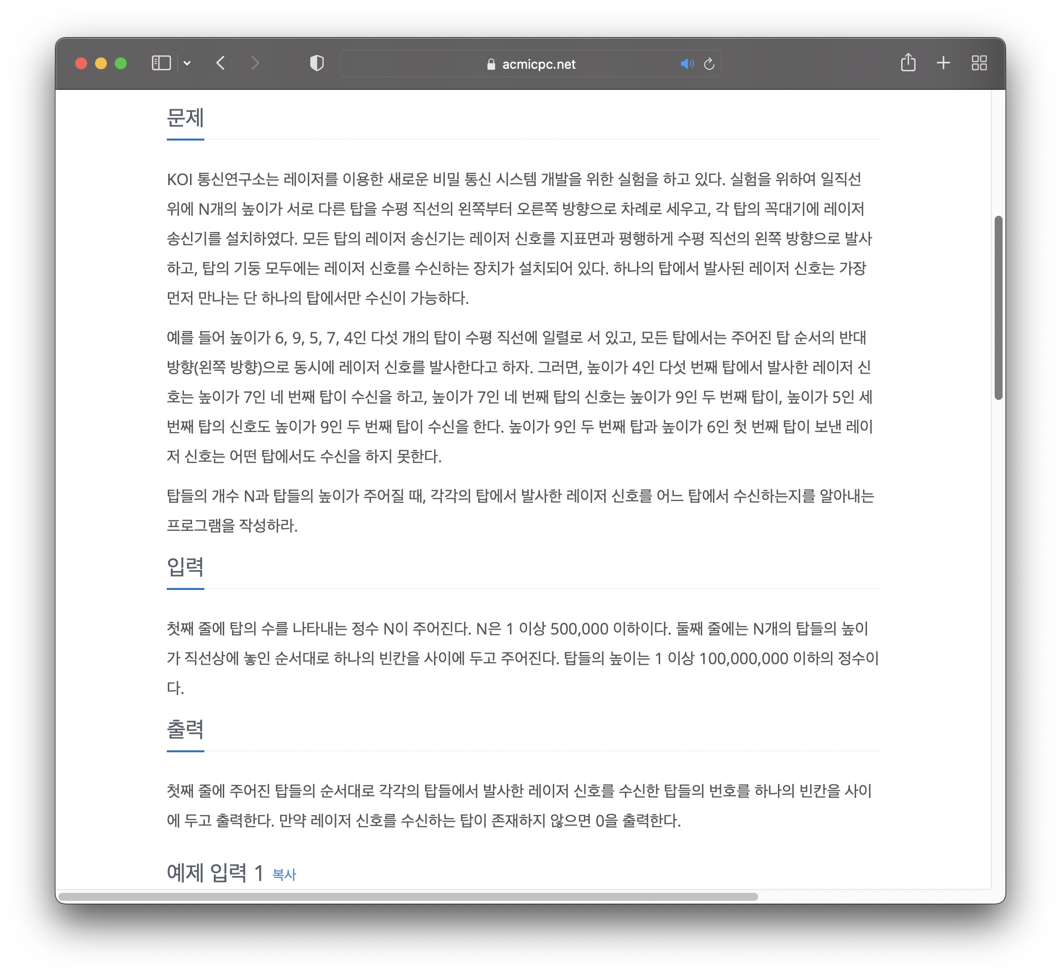 if (!st.empty()) ans[i] = st.top(); //스택이 비어있지 않다면 스택의 top에 저장된 인덱스가 현재 탑의 신호 수신탑