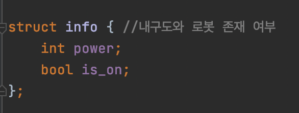 1. 구조체로 해당 인덱스에 로봇의 여부 / 내구성을 저장하게 구현하는 것이고,