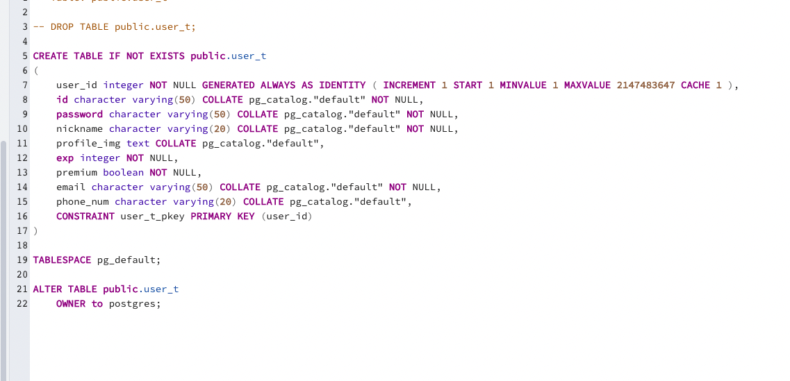 user_id : user_t참고 (기획 serial-nextval / 구현 integer)