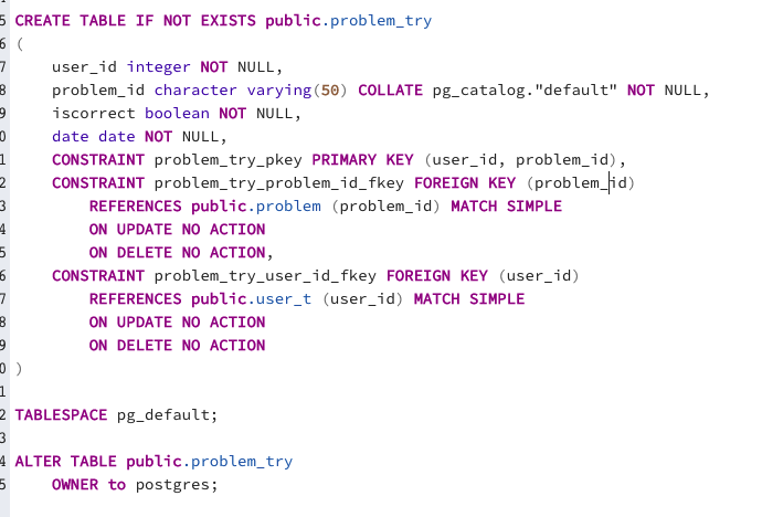 | problem_try | 특정 문제를 시도한 특정유저를 저장하기 위한 테이블 |