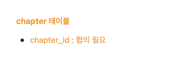 | chapter | 문제집의 목차(단원명)과 관련된 정보를 저장하는 테이블 |
