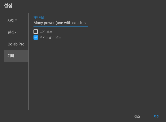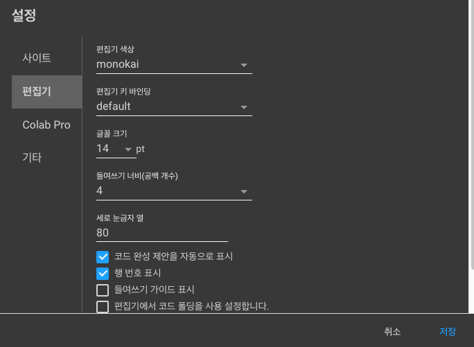 코랩 기타 설정